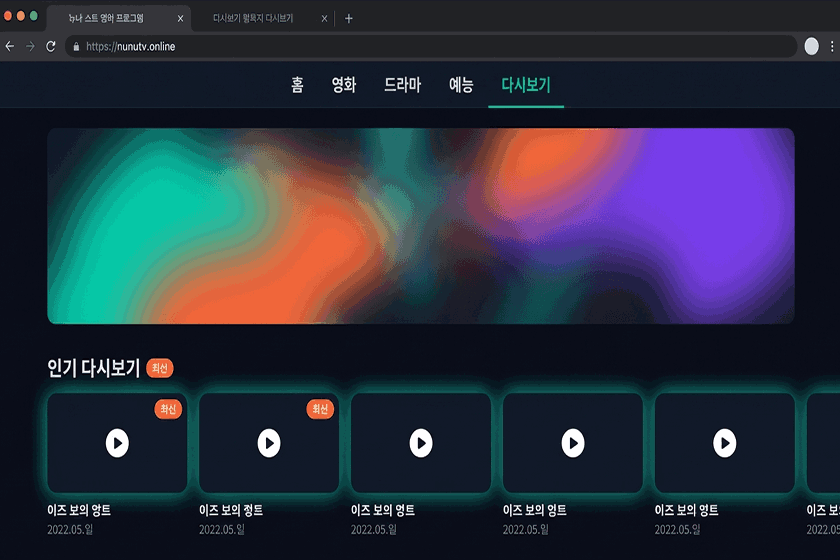 누누티비에서는 실시간 방송 외에도 이미 방영이 끝난 드라마, 예능 프로그램, 영화의 다시보기 콘텐츠를 제공합니다. 방법은 간단합니다. 사이트 접속 후 상단 검색창에 보고 싶은 프로그램명을 입력하거나, 카테고리(드라마 / 예능 / 영화 등)를 선택한 뒤 원하는 콘텐츠를 클릭하면 바로 재생됩니다.